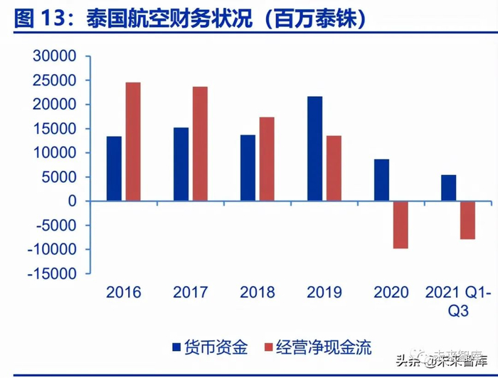 在资金紧缺,缺少正向现金流的情形下,泰国航空公司未来扩张能力严重受限,难以 在疫情结束后快速扩充飞机数,回到疫情前的运力水平。