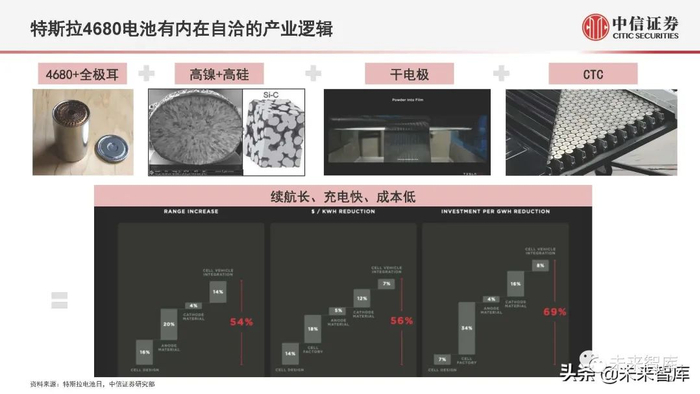I. 特斯拉:4680+全极耳+高镍高硅+干电极+CTC=续航长、充电快、成本低