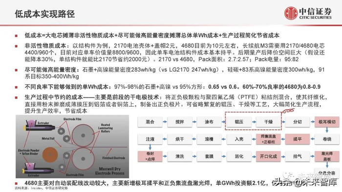 1. 4680电池采用新设计新构型,良率突破是量产关键