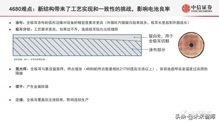 工:2170/18650的极片上需要将留出空白区域给极耳。全极耳可避免斑马涂布,简化工序。