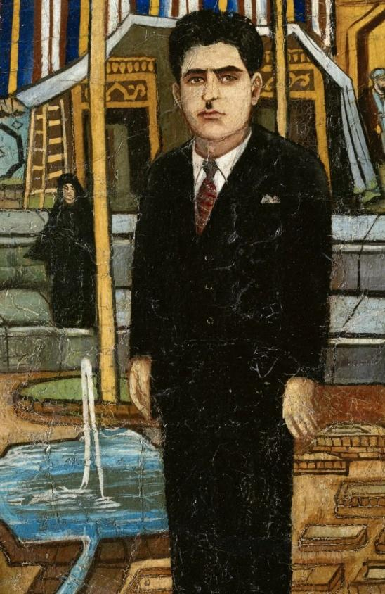 这幅油画的收藏家玛丽亚姆·加法里(Maryam Ghaffari)女士生于伊朗德黑兰,成长于法国巴黎。画中人物正是她的父亲——法罗克·加法里(Farrokh Ghaffari)。法罗克·加法里是伊朗著名的新浪潮导演,执导过伊朗最早的新现实主义电影之一——《城南》,1979年后定居巴黎,担任Positif杂志影评人,直至 2006 年去世。而这件饱经沧桑的画作也伴随两代主人在欧亚之间辗转多地。