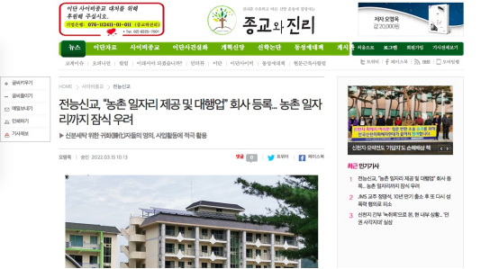 【中国反邪教网2022年3月21日消息,通讯员:子舒】3月15日,据韩国媒体“宗教与真理”报道,“全能神”邪教组织使用非正当手段在韩购房置地,除严重扰乱韩国不动产市场秩序外,还污染、破坏当地环境,引发民怨。近期,经韩有关部门调查发现,“全能神”注册的农业法人,其经营范围中还设有“提供农村工作岗位及农业作业代理”等业务。对此,当地民众忧心“全能神”又欲染指韩国乡村就业市场,愈发不安。