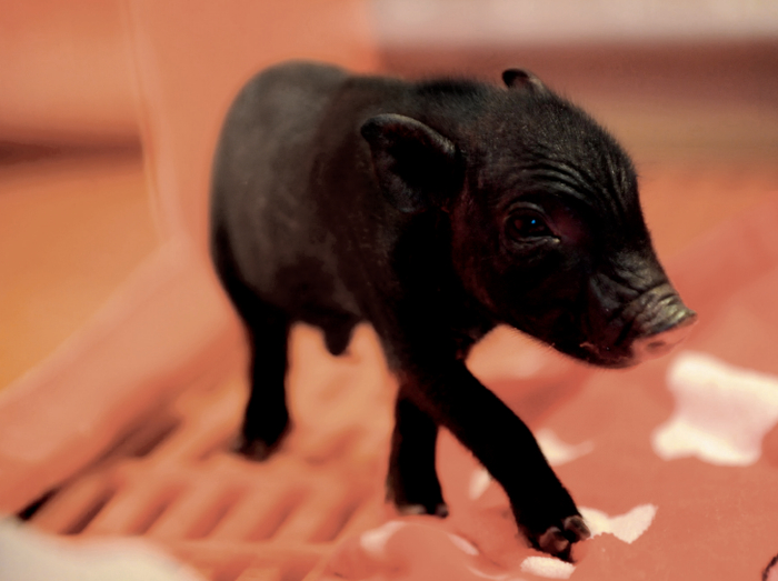 在云南出生的世界首只近交系克隆猪(2010 年 1 月 19 日摄)。