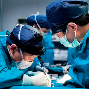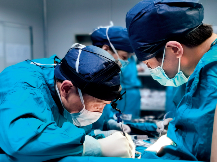 与团队成员共同进行猪 - 猴异种心脏移植手术 张懿楠摄 / 本刊