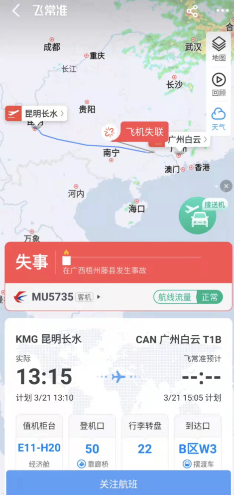 3月21日下午,中国东方航空云南公司MU5735航班在从昆明长水机场飞往广州白云机场途中发生坠机事故,在广西梧州境内山区失事。这也是中国民航自2010年伊春空难之后又一次重大事故,并导致持续4227天,行业安全纪录再次“清零”。