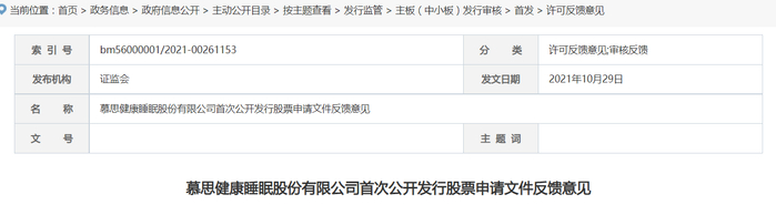 今年3月21日,记者查询证监会官网查询到,慕思股份IPO信息仍停留在10月29日的审核反馈状态。