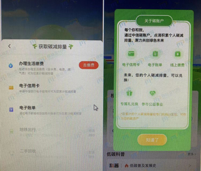 据记者观察,从内测者提供的信息来看,中信银行上线的“碳账户”与支付宝“蚂蚁森林”颇为类似,均采取通过减碳行为进而积累“绿色能量”,最终通过积累的能量获取一定权益。