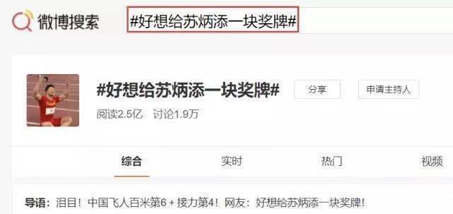 即使戴着口罩,苏炳添也难掩羡慕和落寞。赛后,不少网友表示“好想给苏炳添一块奖牌!”该话题当时还登上了热搜,阅读量突破了2.5亿。