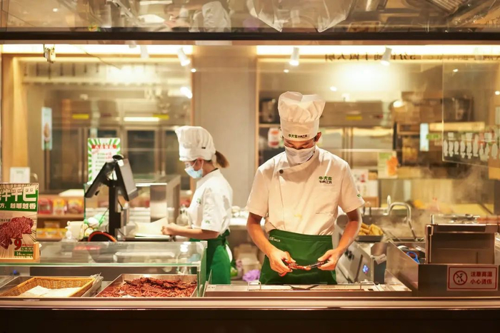 从门店业态来看,牛大吉现有1.0和2.0两种版本门店,前者以售卖生鲜牛肉为主,按照牛肉部位进行了分割,包括牛腩、牛柳、吊龙、三化腱、五花腱、腱子肉、雪花肉、胸口油等;后者在生鲜牛肉的基础上,新增了牛肉相关的熟食饭菜和茶饮等。
