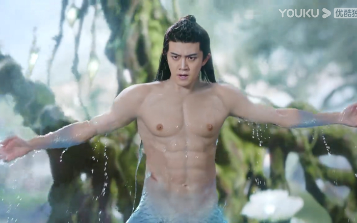 任嘉伦鲛人造型的“肌肉衣”特效。