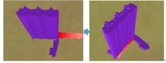 MapGIS三维场景构建工具(10.5.6.10)除提供数据配准工具解决空间xy方向位置的问题外,同时也新增了冲突检测工具,可以针对Z方向的模型进行冲突检测,并自动调整位置并融合,如地形和建筑物等模型的融合问题。