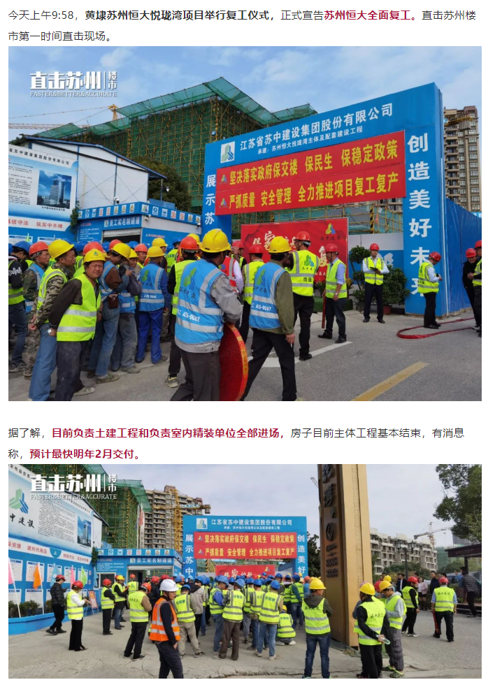 去年11月恒大悦珑湾项目复工,直击苏州楼市也在现场直击。