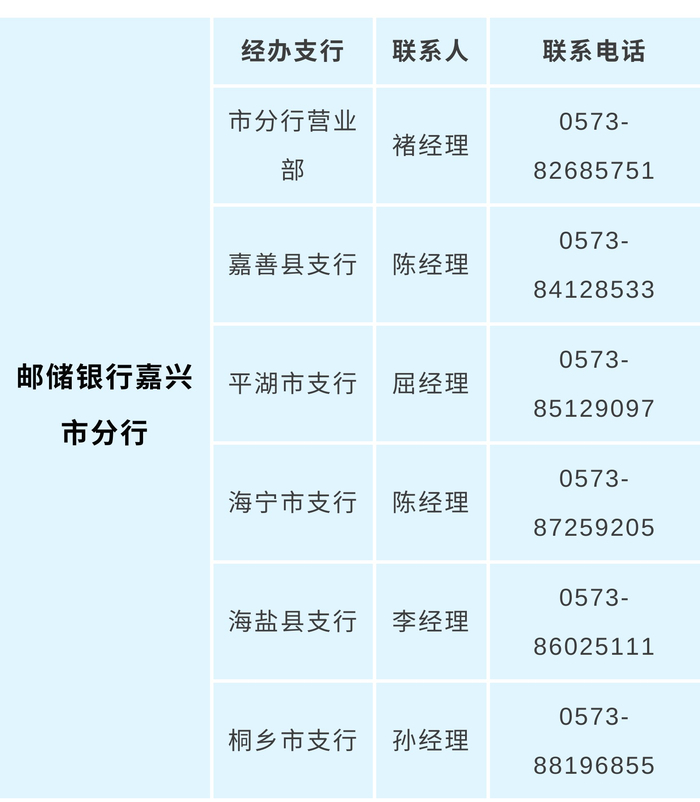 邮储银行嘉兴市分行