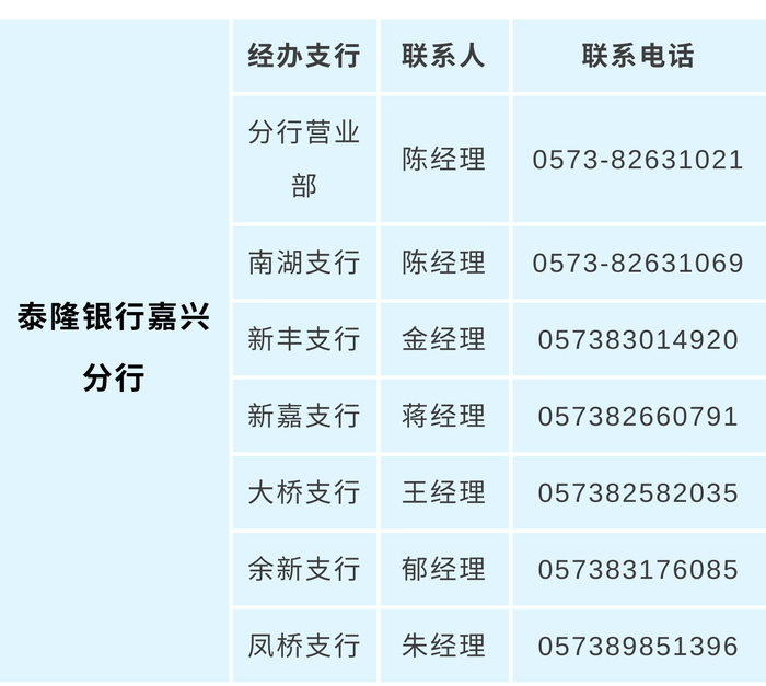 泰隆银行嘉兴分行