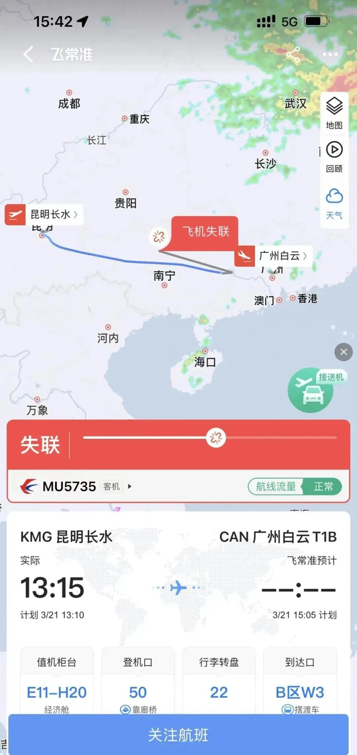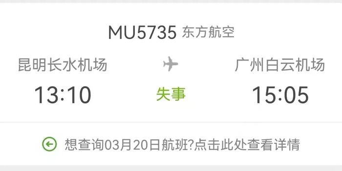 直到一个小时之后,也就是3月21日16时34分,中国民用航空局官网的通报,才让这群自发前往灭火的村民知道了关于这架飞机的更多消息。通报称:当天,东航一架波音737客机在执行昆明——广州航班任务时,于广西梧州上空失联。已确认该飞机坠毁。机上人员共132人,其中旅客123人、机组9人。飞机最后失联位置为梧州本场157度,13.6km处,正是孙明村子所在的地方——藤县埌南镇莫埌村附近的山谷。