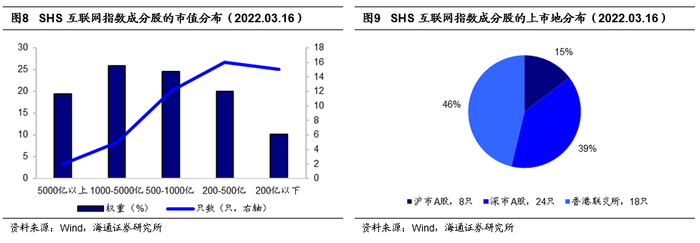 从上市地点的分布来看,14只属于港股市场,数量占全体成分股的比例为35.66%。而1000亿以上成分股中,港股数量占比达到6成;而市值相对较小(不足1000亿)的股票中,港股的数量占比仅为17.86%。这表明,在当前市场环境下,指数编制规则在中大盘股票的选择中,更加偏好港股市场。