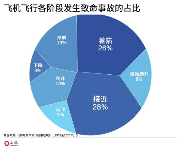 在飞机飞行阶段中,“接近”与“着陆”是发生事故最频繁的两个阶段。其中“接近”阶段发生致命事故的比例最大,为28%,而“着陆”过程的占比则为26%。