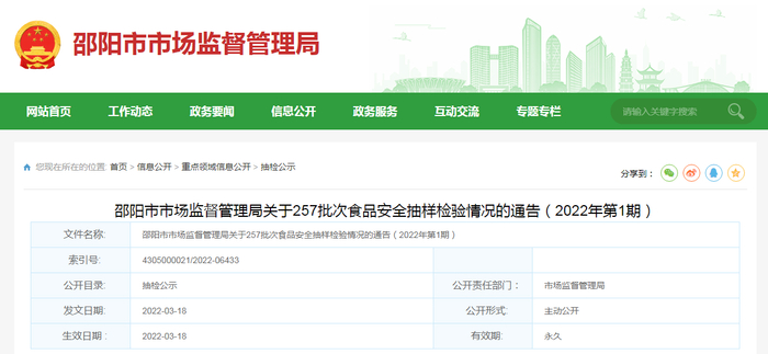中国质量新闻网讯 近日,湖南省邵阳市市场监管局发布2022年第1期食品抽检信息。本期抽检6批次酒类产品,全部合格。