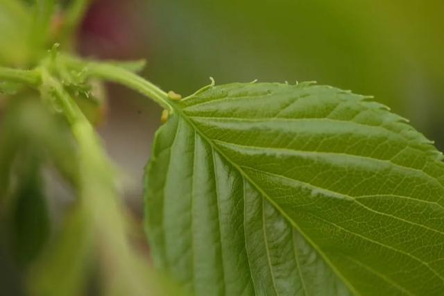 晚樱和海棠花期有重叠,或者大家看到了已开始长叶的东京樱花,这可怎么辨认呢?不用担心,大家可以再看叶片。樱花的叶片基部有两个鼓起来的能分泌物质的点点,在植物学上称为腺点,而海棠的叶片上是没有腺点的。