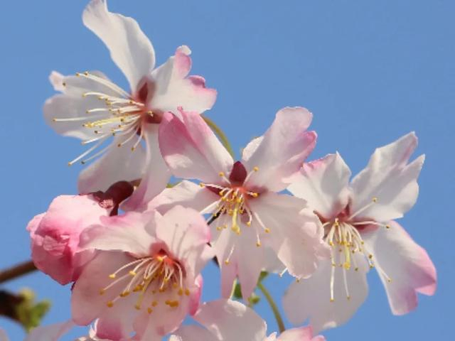 此外,还有冬樱如‘奖章’樱,除了春天,秋冬也会绽放一次。除了晚樱是花叶同放的外,一般樱花都是先开花后长叶。