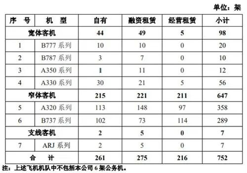上个月,公司刚引进了1架A350飞机,东方航空共拥有752架运营飞机,其中有261架为自有飞机、融资租赁飞机275架、经营租赁飞机216架。