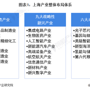 上海是我国的经济金融中心,各大产业创新能力突出,现代化水平较高。2021年6月,上海市政府发布了《上海市战略性新兴产业和先导产业发展“十四五”规划》,明确了上海“六大重点工业行业,九大战略性新兴产业,六大未来产业”架构的产业格局。“六大重点工业行业”为电子信息产品制造业、汽车制造业、石油化工及精细化工制造业、精品钢材制造业、成套设备制造业和生物医药制造业。“九大战略性新兴产业”为集成电路产业、生物医药产业、人工智能产业、新能源汽车产业、高端装备产业、航空航天产业、信息通信产业、新材料产业、新兴数字产业。“六大未来产业”为光子芯片与器件产业、基因与细胞技术产业、类脑智能产业、新型海洋经济产业、氢能与储能产业、第六代移动通信产业。