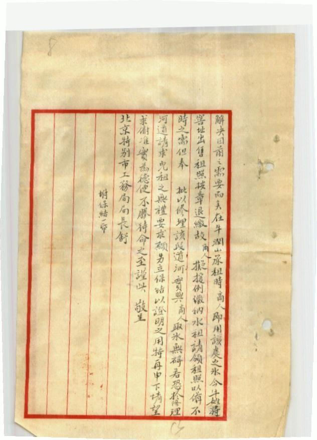 1930年,北平特别市工务局批准王德山租用北海公园雪池冰窖的公函