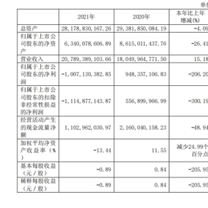 3月21日,江河集团(601886 .SH)发布2021年度报告,报告期内公司实现营业收入207 .89亿元,同比增长15.18%;归属上市公司股东的净利润-10.07亿元,较上年同期由盈转亏,同比减少206.2%。
