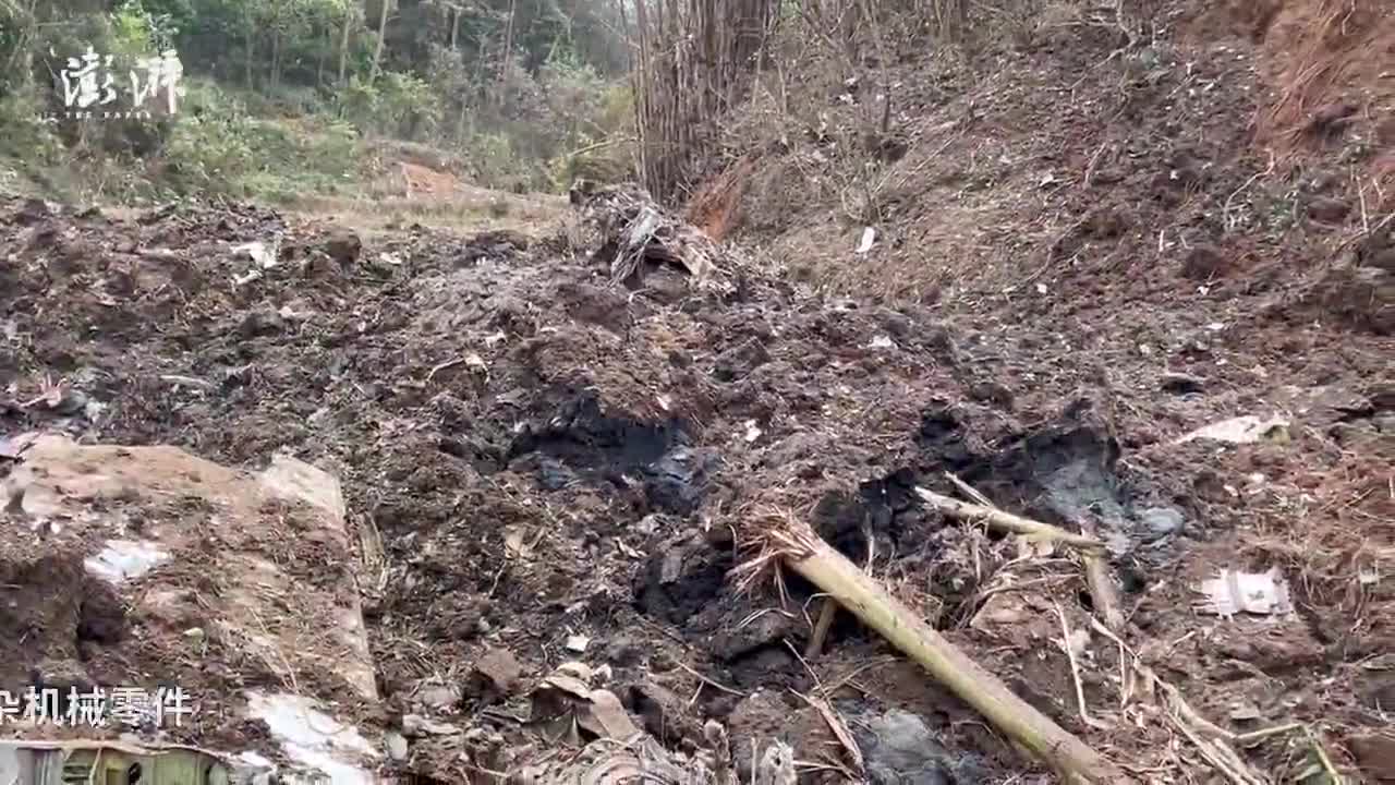 东航空难坠机核心现场:机械零件等碎片被标注记号