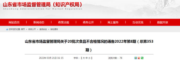 | 21 | / | / | 宁津商储福宁超市 | 山东 | 腐竹 | / | 2021/9/17 | 豆制品 | 腐竹、油皮及其再制品 | 山东/省抽 | |