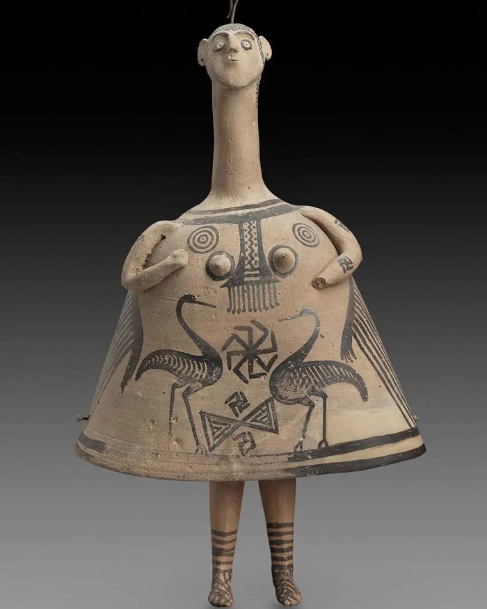 钟形女俑,希腊几何时代晚期或东方化时代早期,公元前720-700年,制造地点:希腊,波奥蒂亚,赤土陶器