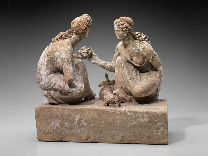 女孩们在玩指关节的游戏,希腊,南意大利希腊化时代早期,公元前330-300年制造地,意大利,卡普亚或库马伊,赤土陶器