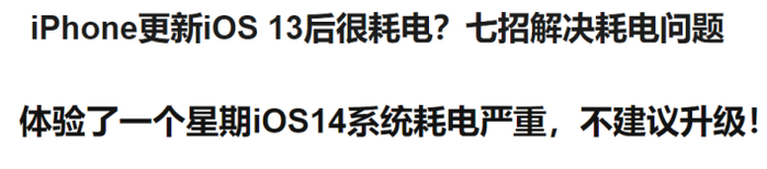不知道大家有没有发现,每次 iPhone 手机升级 iOS 系统后都会出现电耗快、手机发烫的现象。2018年IOS12、2019年IOS13 、2020年IOS14,系统升级后,都有部份网友表示自己手机虽然流畅度增加了,但是耗电问题也随之而来,尤其是一些老机型,本来是一天一充电,更新IOS后续航直接崩溃,出门必带充电宝,很是闹心。