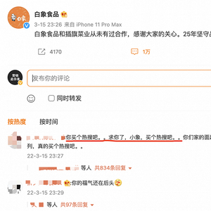 北京冬残奥会期间,白象因为员工有三分之一是残障人士,被网友送上了热搜。315土坑酸菜问题曝光后,白象的霸气回应再次赢得大批网友点赞,有网友哭谏白象去买个热榜,结果是白象没有花钱,但热榜有了。