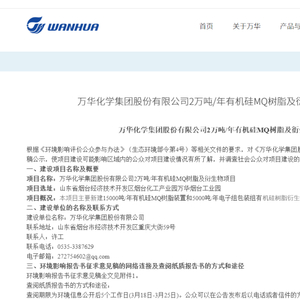 项目名称:万华化学集团股份有限公司2万吨/年有机硅MQ树脂及衍生物项目