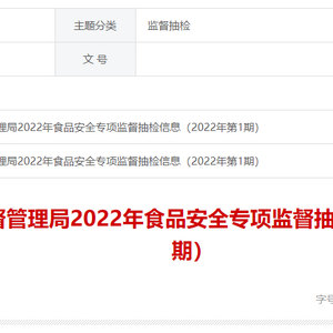 | 序号 | 抽样单编号 | 标称生产企业/供应商名称 | 标称生产企业/供应商地址 | 被抽样单位名称 | 被抽样地址 | 食品名称 | 规格型号 | 购进/生产/加工日期 | 分类 | 任务来源/项目名称 | 承检机构 |