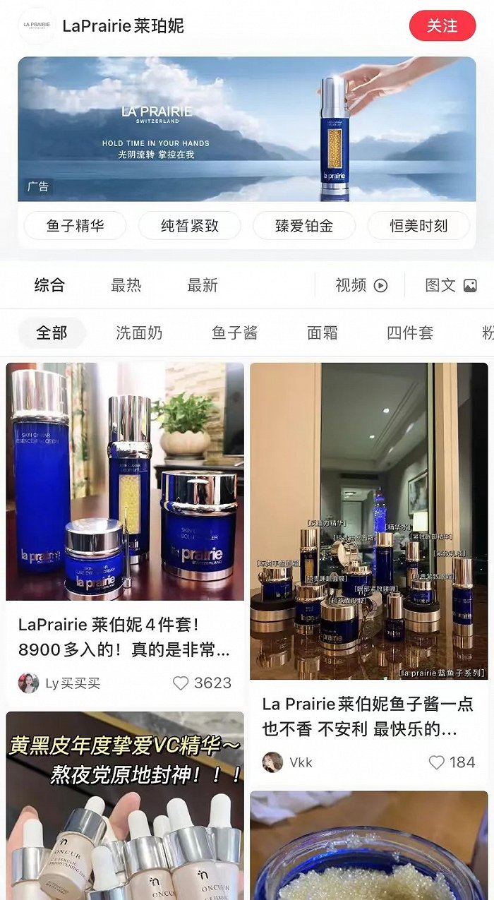 记者在社交平台也看到,即便LaPrairie相对低调,但在小红书还是有着大量的种草贴,尤其是单品都售价过万元的臻爱铂金系列,更是广受好评。