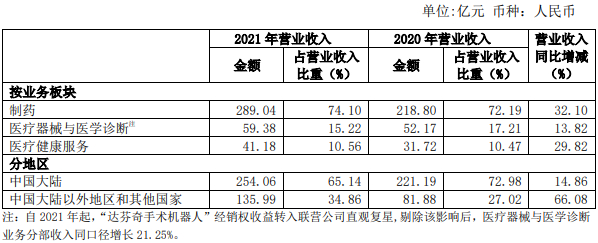 1)复必泰(mRNA新冠疫苗)2021年3月纳入港澳地区政府接种计划、2021年9月在中国台湾地区开展接种,报告期内于港澳台地区实现销售约2,200万剂;汉利康(利妥昔单抗注射液)报告期内实现收入16.90亿元,同比增长125.33%;2020年下半年上市的汉曲优(注射用曲妥珠单抗)、苏可欣(马来酸阿伐曲泊帕片)报告期内分别实现收入9.30亿元和4.26亿元;报告期内,包括复必泰、汉利康、汉曲优、苏可欣等在内的新品和次新品收入在制药业务中收入占比超过25%;