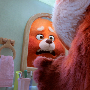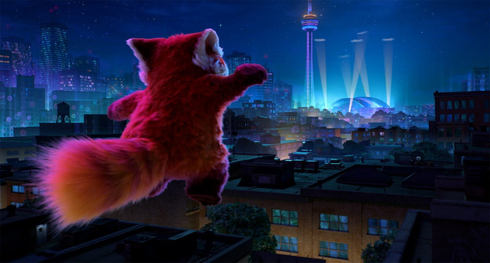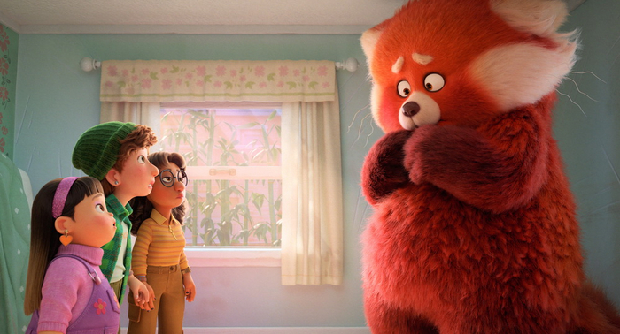 小时候想不到的是,健康人都有过的青春悸动,长大后那么轻易就会忘记。美美的妈妈阿茗就把记忆封存了。她好似忘记自己曾经能变成比体育馆的穹顶还高的巨型小熊猫。为了和美美的爸爸在一起,阿茗曾把家庙拆掉一半。如果小熊猫是她的自我,红色象征鲜血、暴力、性欲和生命力,她的红色小熊猫比家族中所有女性的都更狂暴难驯。
