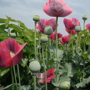 罂粟花脱落后十余天,结出蛋型蒴果,在成熟蒴果上切割,可以渗出白色浆汁,干燥后变成棕褐色,俗称“大烟”或“生鸦片”,是制取鸦片的主要原料,同时其提取物也是多种镇静剂的来源,如吗啡、蒂巴因、可待因、罂粟碱、那可丁。罂粟花绚烂华美,但是美丽背后不容忽视,罂粟是提取毒品鸦片的主要毒品原植物,长期应用容易成瘾,慢性中毒,严重危害身体。