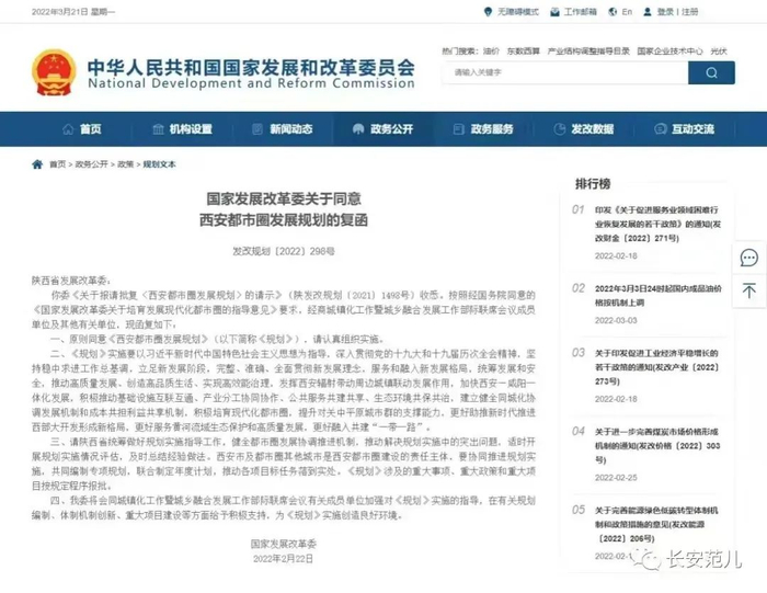 2019年国家发展改革委印发《关于培育发展现代化都市圈的指导意见》,并在全国选取一些前期工作基础好、具备发展潜力的都市圈予以规划指导。2021年4月,国家发展改革委印发的《2021年新型城镇化和城乡融合发展重点任务》中,正式将《西安都市圈发展规划》列为年度编制计划。