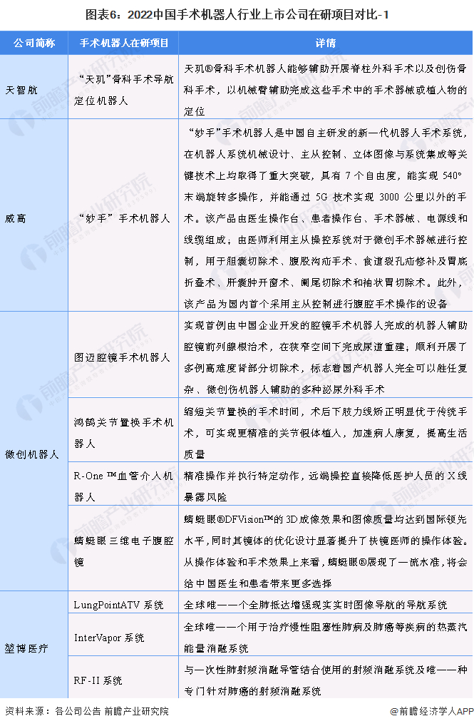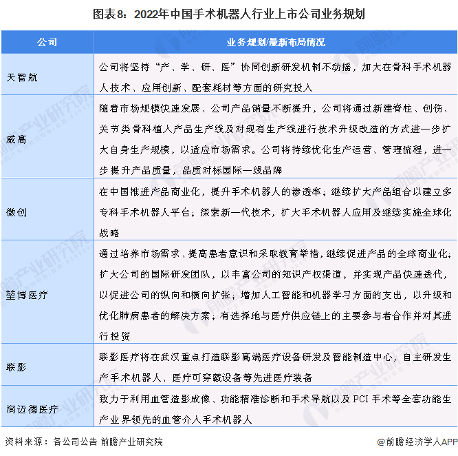 【最全】2022年中国手术机器人行业上市公司全方位对比(附业务布局汇总、业绩对比、在研项目对比、业务规划等)