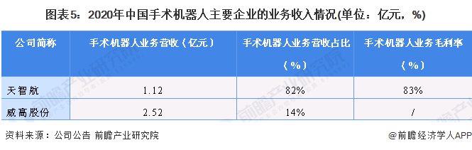 注:目前大部分企业的手术机器人项目处于研发过程中,尚未进行销售。此外,天智航和威高暂未公布2021年年报且季度报中并未体现手术机器人的营收。