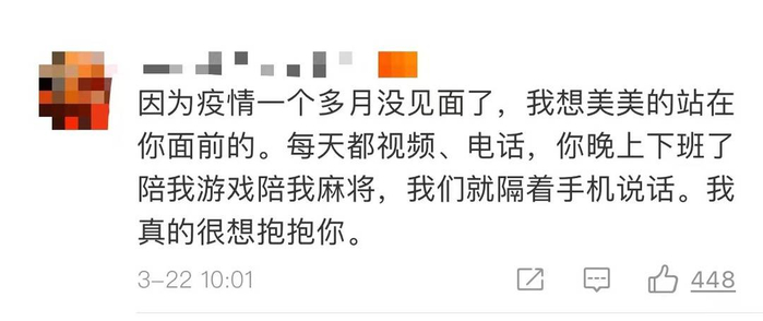 于是,他也在公众号里承诺:“也给自己定了一个规则,不允许超过两个月不见面。时间妥当、疫情允许的情况下,会义无反顾地去找你”“想我了,我就立刻飞到你身边”。
