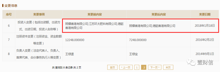 环太硅成立于2004年1月,2018年1月18日,公司股东出现变更,由原来的三位股东香港德懿、香港照耀、环太肥料减至香港德懿、香港照耀两位股东,市场主体类型由台港澳与境内合资企业变为台港澳合资企业。目前,环太硅的法定代表人及执行董事是王禄宝,股东香港德懿、香港照耀分别持股75.14%、24.86%。