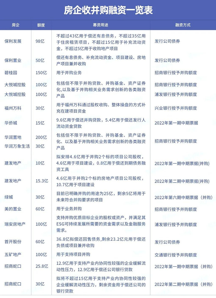 受到金融机构“眷顾”的房企,如碧桂园、美的置业、华润置地、大悦城控股、万科、五矿地产、招商蛇口、建发地产、绿城集团、保利发展、瑞安房地产等,无论是央国企还是民营房企,都是财务相对安全,自身发展相对稳健,有能力扛起并购大旗去收购出险和暴雷房企。