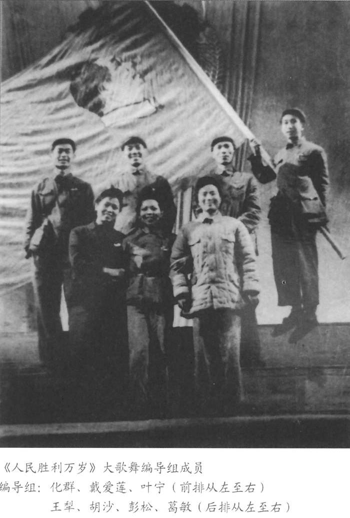 《人民胜利万岁》编导组成员:化群、戴爱莲、叶宁(前排从左至右)、王犁、胡沙、彭松、葛敏(后排从左至右)