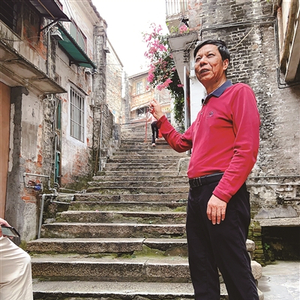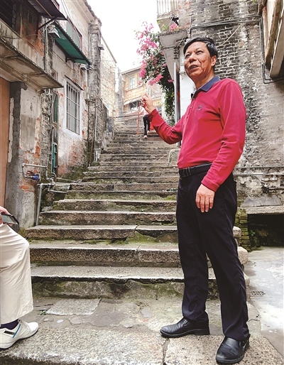 站在水埗头的石阶上,人称“容老爷”的容树荣给记者讲起那一段悠久的江门故事。