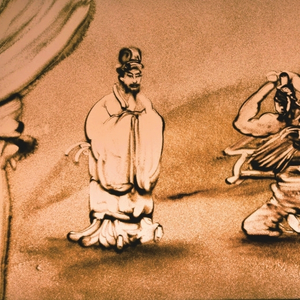 虞卿告辞后,廉颇袒露着肩背,身背荆条来到蔺相如府上登门请罪,见到蔺相如,扑通一声跪在了地上。蔺相如也赶忙迎前跪下:“老将军这是……”廉颇羞愧难言:“我是一个粗野而鄙下的人,想不到蔺上卿对我如此宽容。”蔺相如恳求说:“老将军快快请起。”说着便取下廉颇背上的荆条,用自己身上的衣服给他披上。两人抱在一起,廉颇