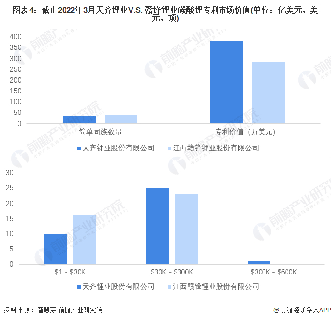 (2)专利市场价值对比:天齐锂业专利市场价值更高